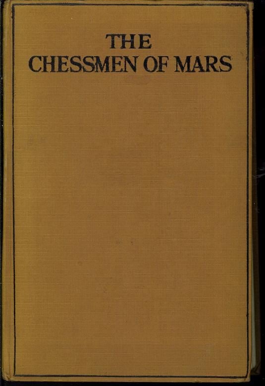Kirjan nimi: The chessmen of Mars Tekijä: Edgar Rice Burroughs Kustantaja: Methuen & Co Painovuosi: 1924 Painos: 2 Sivumäärä: 243 Sidonta: Sidottu, ei kansipapereita